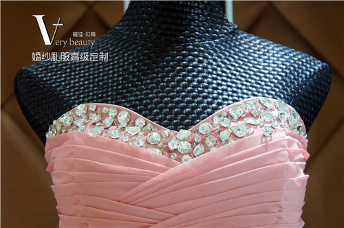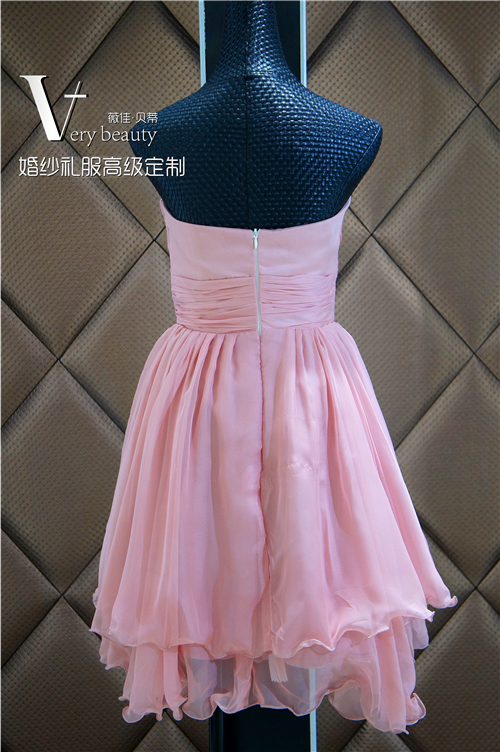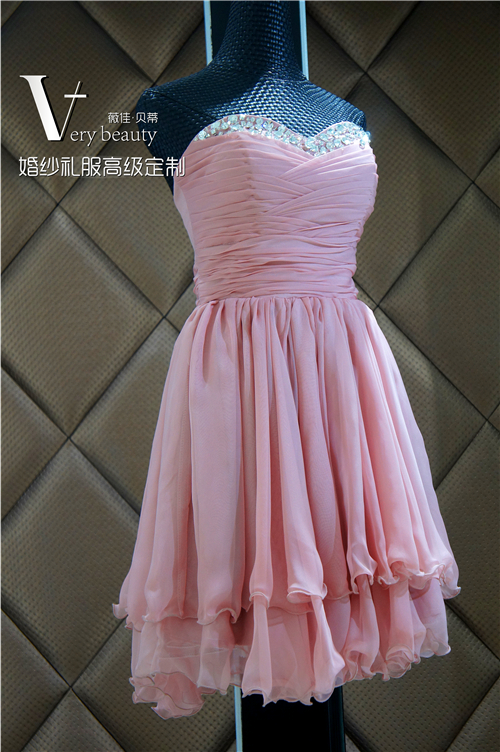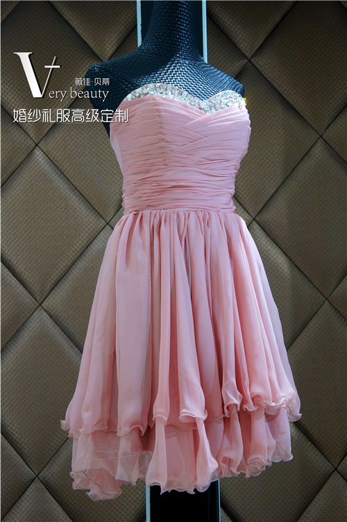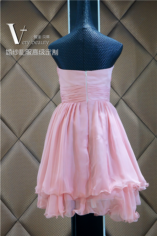 藕色抹胸短款礼服